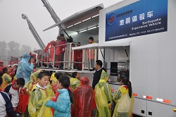 昌平消防支队永安中队、回龙观中队、未来科技城中队还在现场组织了开展丰富多彩的消防观摩、体验活动,包括发放消防法规、防火常识、逃生自救常识、初期火灾扑救等方面宣传资料;火灾案例、消防法规、合用场所、防火常识等方面消防安全展板;火灾抢险救援车演示;新型消防装备——路虎雪炮消防车的性能和用途介绍;通过在消防宣传车上观看火灾案例视频,了解火灾的危害及相关责任追究等宣传,领导和参会的小学生、相关消防安全人员还都在现场搭建的烟雾逃生帐篷中体验学习火场烟雾中的逃生相关技能,登上由中国消防博物馆提供的地震体验车,感受地震时的实际状况,学习逃生自救的避难方法和技能。