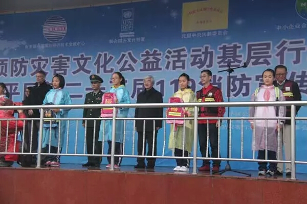 UNDP在华项目“国家预防灾害培训体验和法治保障文化基地建设项目”执行至2015年,工作进入侧重于推广预防灾害文化,普及预防灾害知识的阶段。在第25个“119消防日”来临之前,为了更好地树立预防灾害观念,努力营造全民关注消防、参与消防、支持消防的良好氛围,11月5日,国家预防灾害文化公益活动基层行项目管理办公室与北京市昌平区消防支队在北京昌平区百善镇百善学校举行“国家预防灾害文化公益活动基层行北京站走进昌平区暨昌平区第二十五届119消防宣传月活动启动仪式”活动。