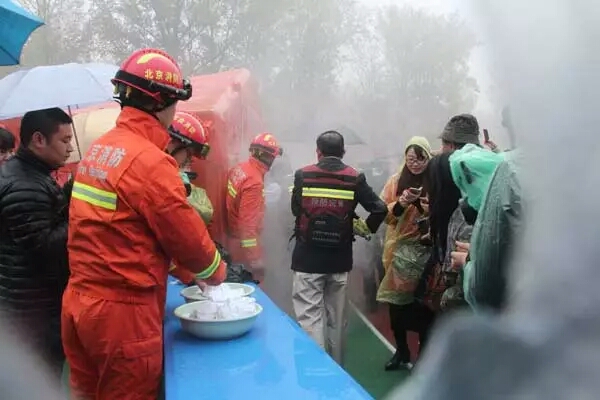 活动现场还有昌平区消防安全重点单位502人、派出所列管的消防安全重要单位600人、百善学校教职工代表160人、百善学校学生代表600人、全区中小学教职工代表200人等两千余人,大家在2015年的冬雨中参加了此次活动。
