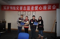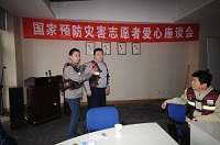 座谈会上,通过对交通事故等人为灾害和地震等自然灾害的介绍,宣讲了预防灾害公益活动的意义,并以发放宣传材料、讲解预防灾害知识、赠阅预防灾害法律书籍、捐赠预防灾害用品用具等丰富多样的方式,使志愿者掌握相关预防灾害知识,熟练使用预防灾 害用品用具的同时,能够承担起向越来越多的人们传播预防灾害理念的责任。