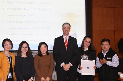 近日,在由UNDP组织的“联合国开发计划署驻华代表处国别方案回顾与项目管理能力建设交流活动”上,国家预防灾害培训体验和法治保障文化基地建设项目经评选获得UNDP “年度最佳项目宣传奖”,副国别主任何佩德为项目颁发了奖品,项目管理办公室刘磊和UNDP负责的项目官员任梦颖一同上台领奖。