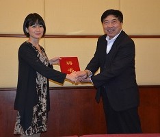 会议结束后,李重庵向正谷绘美颁发“国家预防灾害文化公益项目专家组协调主任”聘书。霍恩全向正谷绘美颁发“国家预防灾害文化公益项目志愿者”聘书。