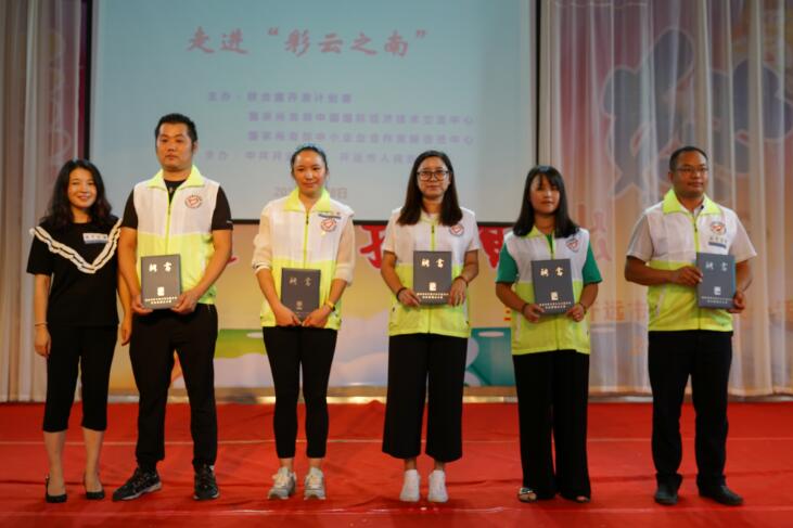 (项目经理张素娟颁发志愿者聘书) 活动中,全国预防灾害行业管理联盟理事会副理事长、国家发展改革委员会国际合作中心原副主任霍恩全代表主办方为开远市民政局“国家预防灾害文化建设公益项目活动培训教育基地”授牌,并表示在今后的国家预防灾害文化建设工作中将在开远市开展系列活动。