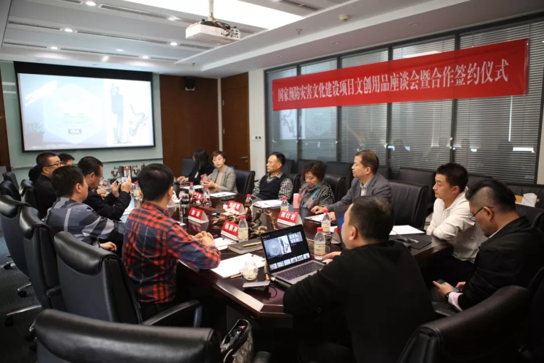 11月4日,国家预防灾害文化建设项目文创用品座谈会暨合作签约仪式在京举行。中小企业合作发展促进中心副主任、全国预防灾害行业管理联盟理事会理事长陈忱主持座谈会,常务副理事长杨鹏冲,副理事长艾克拜尔·米吉提,副理事长彭涛,秘书长周建财,秘书处主任刘韵霞,秘书处办公室主任李继东,北京宋庄艺术区创办人、原党委书记胡介报,北京阳光基金会理事长陈凯,九素文化创办人魏得胜,关爱文化发展基金管委会主任胡露霞参加座谈会及签约仪式。九素文化魏红岩、魏德旭,理事长助理张丽敏,志愿者刘一猛、李娜娜也参加了相关活动。