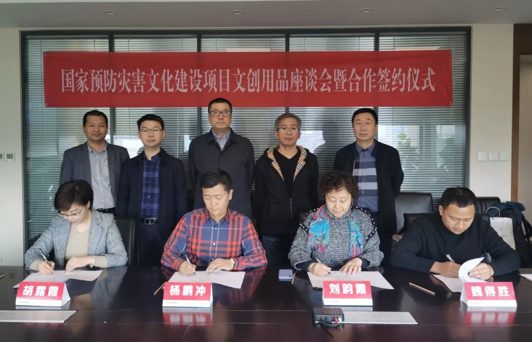 会上,国家预防灾害培训与文化建设项目办公室代表刘韵霞、清控文创(北京)品牌管理有限公司代表杨鹏冲、关爱文化发展基金管理委员会代表胡露霞、九素(北京)造型有限公司代表魏得胜共同签署了国家预防灾害文化建设项目文创研发战略合作协议,各方将齐心致力于预灾文创用品开发,宣传预防灾害文化。